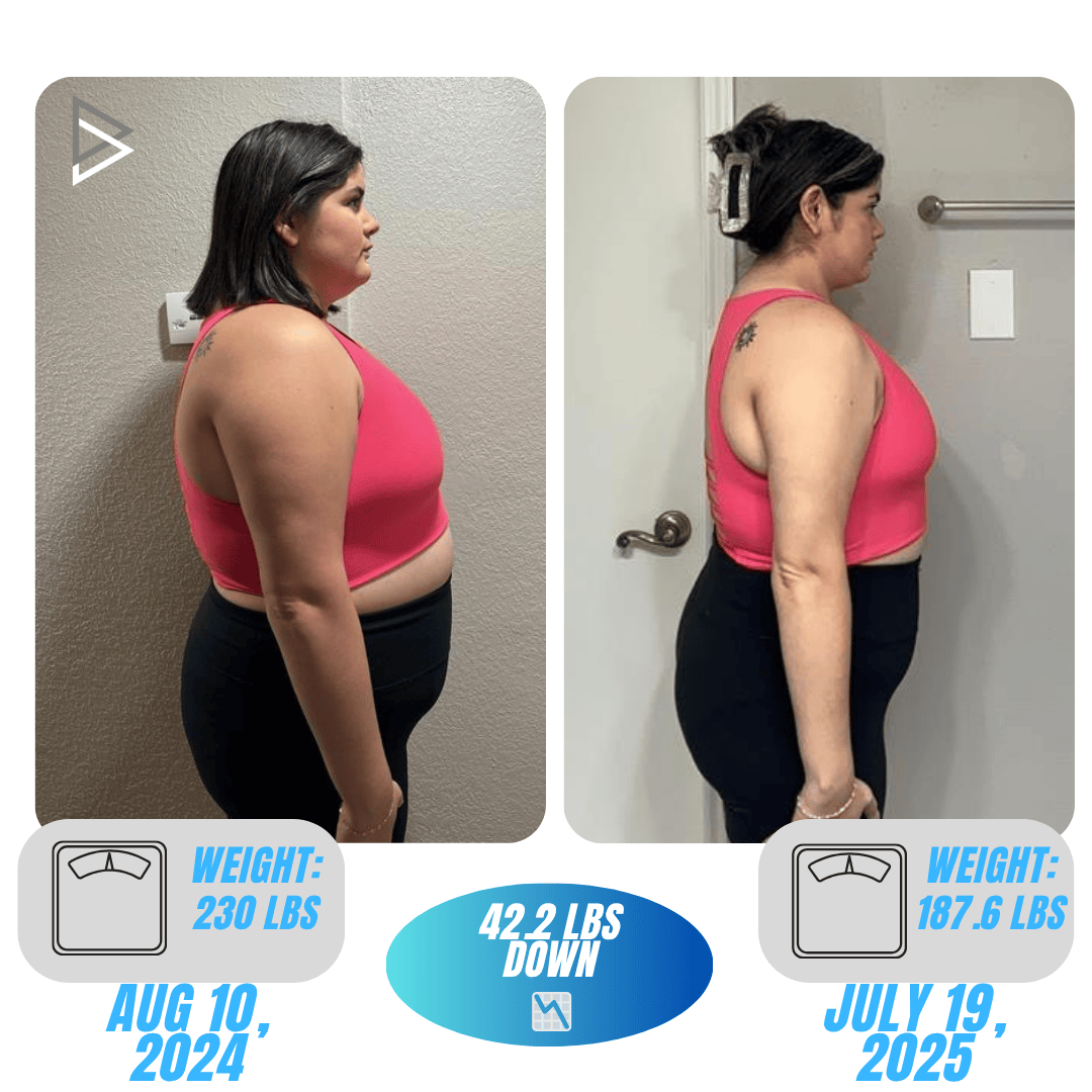 "Thank you for everything, it's really been a fun journey so far and seeing all the work pay off is best part, along with just feeling overall healthier and happier! I truly don't think I could have done it without you!"